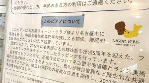 駅構内の「本陣ギャラリー」には、フランス・ランス市(名古屋市の姉妹都市)をモチーフにした、とてもおしゃれな外装のピアノが置かれています。