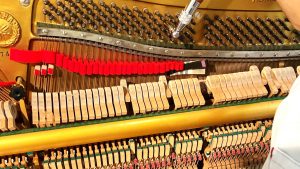 「工具カバンにいつも携帯している小型掃除機で、内部をきれいにできました。外装の取り外しもスムーズにでき、自信になりました。ただ、調律に時間をかけすぎて整調(鍵盤の細かい動きを調整する作業)に十分な時間が取れなかったのが反省点です。思うように仕上げられなかったけれど、これも経験のひとつ。これからもっと挑戦して、どんなピアノにも対応できる力を身につけたいです。」と前向きに話してくれました。