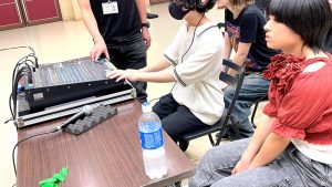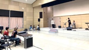 2日目は、会館内のくちなしホール を使って舞台実習。バンド演奏を想定した音響設営に挑戦し、最後にはクラス全員でミニライブを開催しました!