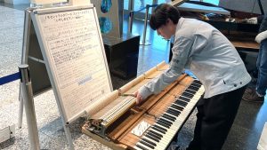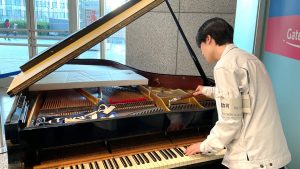 2026年1月9日(金)、ピアノ調律科2年生の学生が、JRセントラルタワーズに設置されているストリートピアノ「いやしのピアノ~dolce(ドルチェ)~」 の補修・調律作業を行いました。