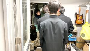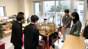 当日は、これらの質問に答えながら、楽器業界の仕事についてお話ししたり、実際の授業を見学してもらったりしました。