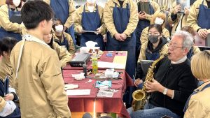 サックスの講義では、実際に学生が演奏し、その音や吹き心地を確認しながら、「楽器の調整に原因があるのか」「奏者の吹き方や練習が必要なのか」を見極めていく過程を学びました。音の変化を体感しながらの授業に、学生たちも真剣な表情で取り組んでいました。