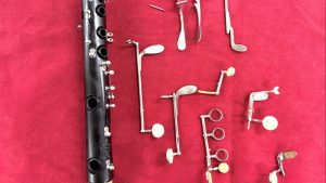 2年生の前期ももうすぐ終わろうとしています。私たちが今取り組んでいるのは、クラリネットの「全タンポ交換」と「ジョイントコルク交換」です。1年生のときとは使う接着剤も変わり、よりレベルアップした技術を学んでいます。