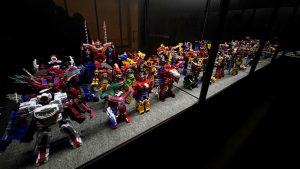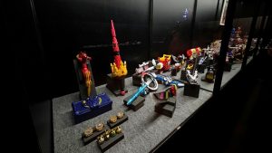 会場には、歴代戦隊のおもちゃの展示や、撮影禁止のエリアでは実際に使われた小道具・破壊されたマスク(面)などもありました。