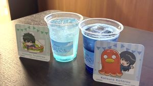 今まねきねこでは、アニメ『銀魂』とのコラボキャンペーンが行われていて、キャラクターごとに色や味が違うコラボドリンクや、シール・缶バッジなどのグッズが販売されています。